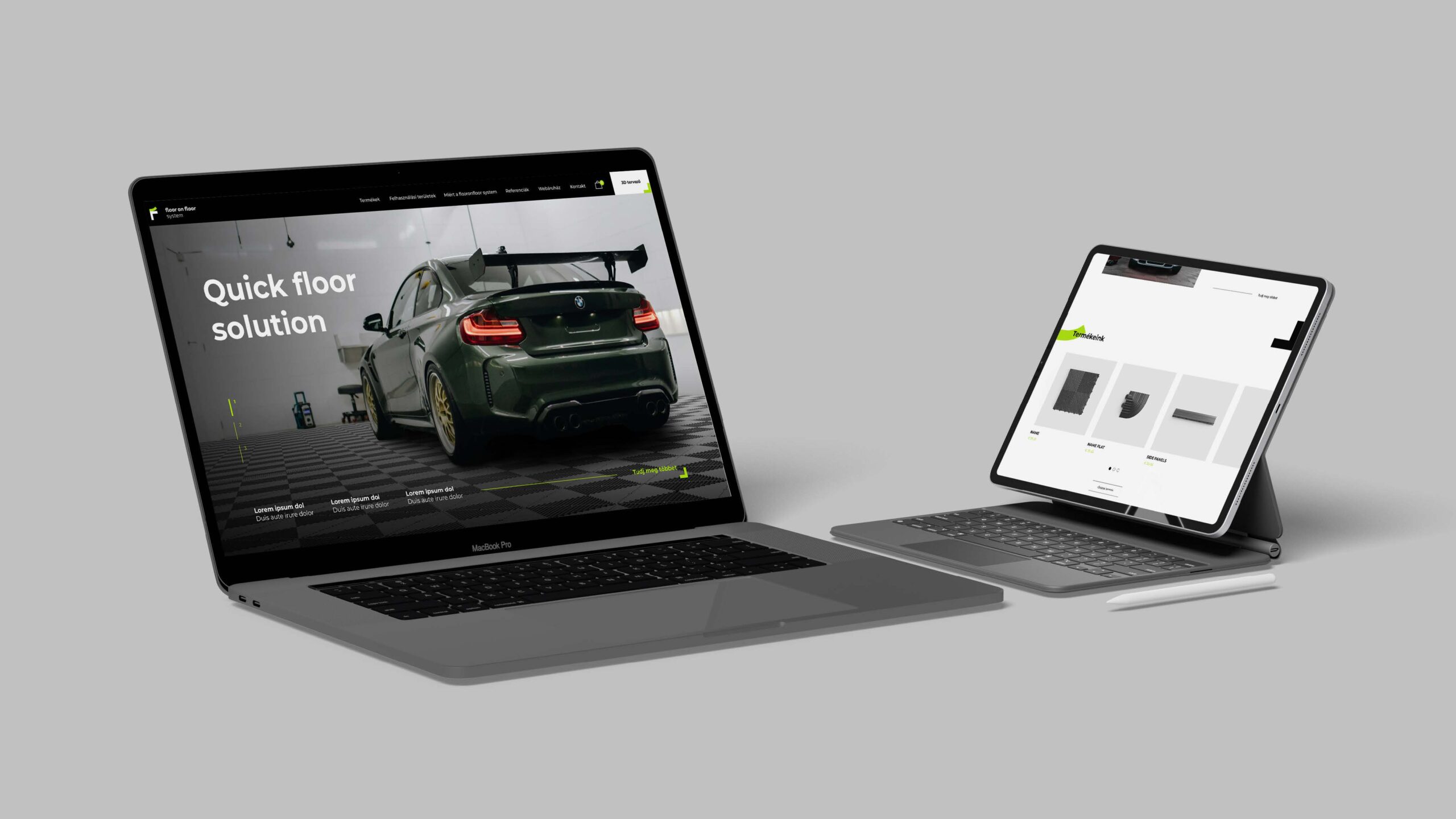 A Floor on Floor egy 100%-ban magyar fejlesztésű és gyártású moduláris műanyag padlóburkoló rendszer, amelyet a GIA Form Kft. készít több mint 35 éves iparági tapasztalattal. A termék otthoni és ipari felhasználásra egyaránt ideális, hiszen a Quick Floor technológia lehetővé teszi az előkészítés nélküli, gyors telepítést és a könnyű alakíthatóságot. Stúdiónk feladata a logó és arculat tervezése volt, ahol kiemelt figyelmet fordítottunk a modularitás, innováció és prémium minőség vizuális megjelenítésére.