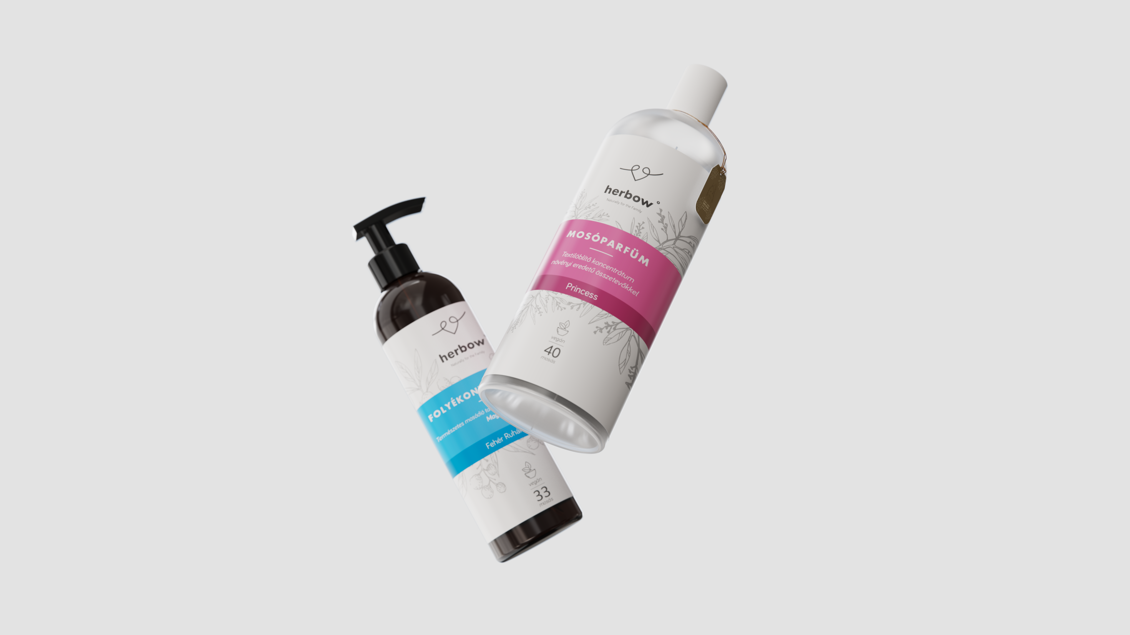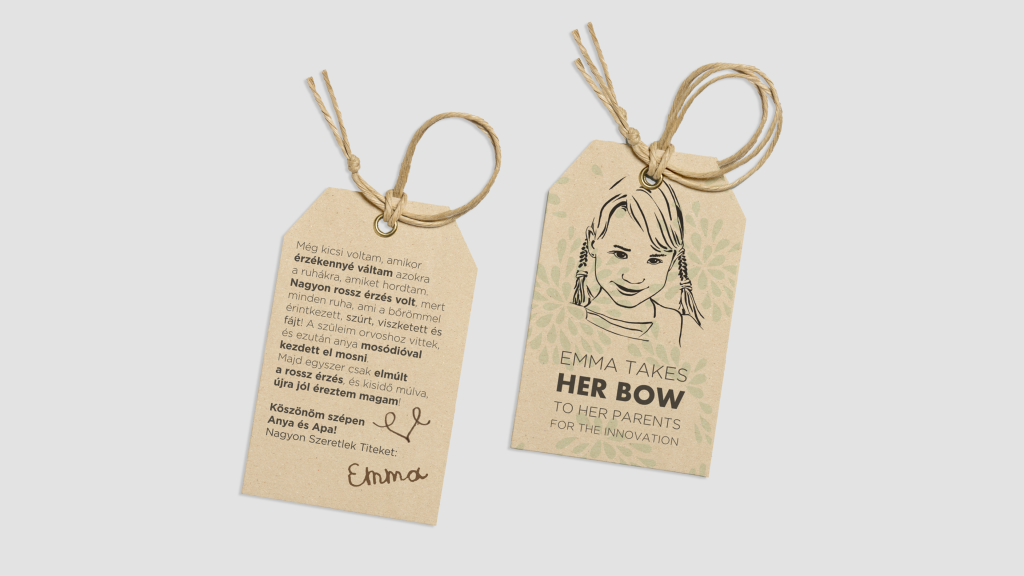 A Herbow már piacon lévő „startup” volt, amikor megtalált minket. Feladat egy új címke készítése volt, ehelyett az egész termék átmárkázását és kommunikációját sikerült megvalósítanunk . Az eredeti márka a HERBAL ORGANIC WORLD szó rövidítése volt, és mivel már polcon volt a termék, a névváltoztatás nem volt lehetséges. . Ahogy feltártuk a történetet a termék mögött, egy igazi kincsre leltünk: A termékfejlesztő házaspár a klasszikus mosószerek fejlesztésén dolgozott nagy márkáknál, amikor a harmadik gyereküknél súlyos ekcémás tünetek jelentek meg , szinte mindenhol a testén levált kislányuk, Emma bőre. Az édesanya feltárta, hogy a mosószerek hatása a bőrbetegség. Ekkor fordult a mosódió irányába. Alapból viszont a mosódió kesernyés, így egy innovációval változtattak a szerkezetén és illóolajokkal vegyítették. Ebből született egy 100%-osan természetes termékcsalád. A történet annyira megható volt, hogy ez szülte az arculatot, a szív-szülők-emma hármas ikonográfiáját a logonak, valamint a HER-BOW sztorit, ahol a márka-tulajdonnévből egy köznevet, a kislány tiszteltnyilvánítását emeltük be a szó széttörésével. Ez a kommunikációs kampány és arculat hatalmas sikert aratott a vásárlók körében.