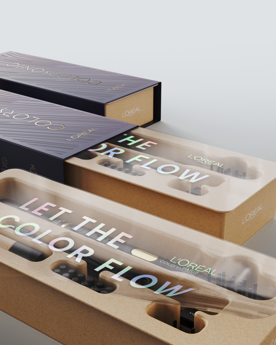Stúdiónk számára a cél egy olyan csomagolásbelső megalkotása volt a L’Oréal számára, amely nem csupán egy szükséges kiegészítő, hanem a termék technológiai innovációjához méltó design elem. A pulp molding technológiával egy bentó-szerű rendszert hoztunk létre, amely újraértelmezi az anyag lehetőségeit és új kontextusban értelmezi azt – ezáltal a forma, az anyag és a használhatóság összhangja egy olyan élményt teremt, amely már a kicsomagolás pillanatában érzékelteti a termék nívóját.
